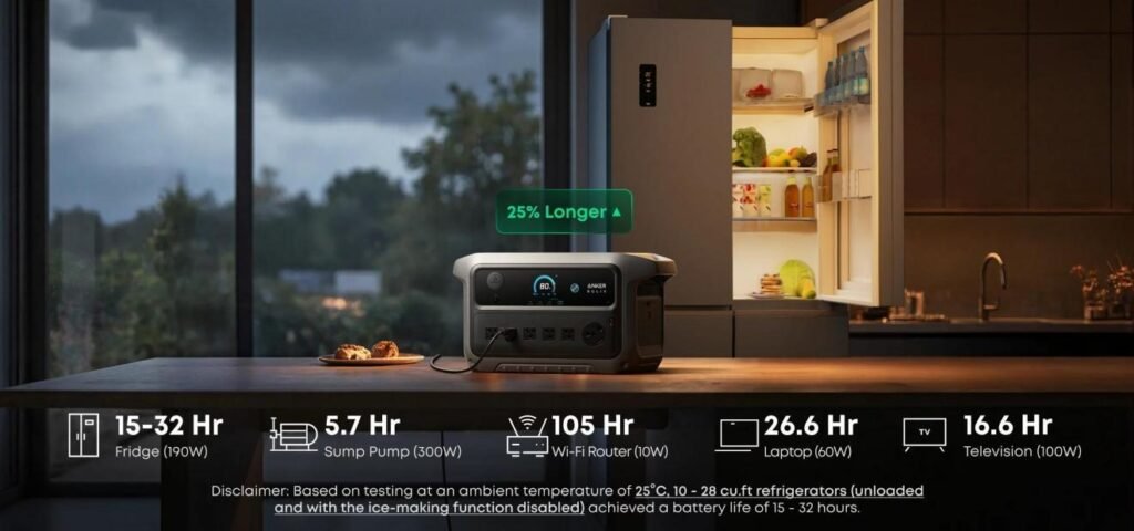 The Anker SOLIX Home Energy Storage solution showcases potency in home energy backup. With the ability to expand up to 4kWh, it guarantees power availability for essential appliances, such as refrigerators, for extended durations. Efficient solar panel alignment and fast recharging features mean minimal downtime even during prolonged outages. Anker’s home solutions ensure security, adaptability, and optimal performance when integrated into household power systems.
